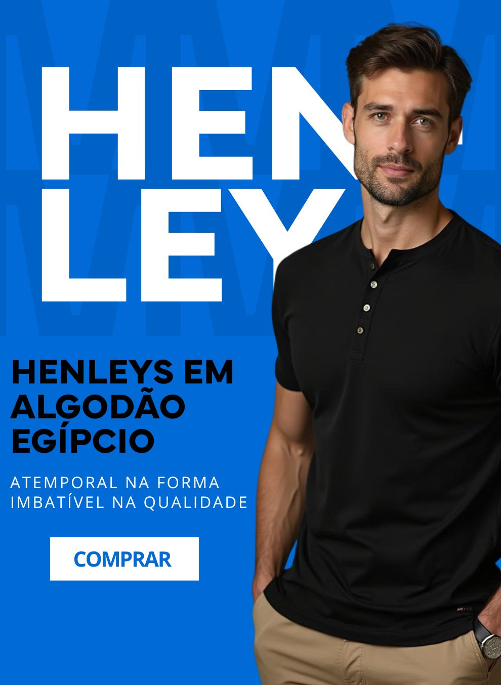 Kit 3x Camiseta Henley de Algodão Egípcio - Luxor - R$ 161,00 cada