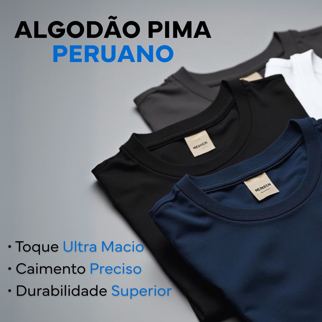 - Algodão Pima Peruano Autêntico — Fibras longas que garantem maciez superior e durabilidade excepcional.