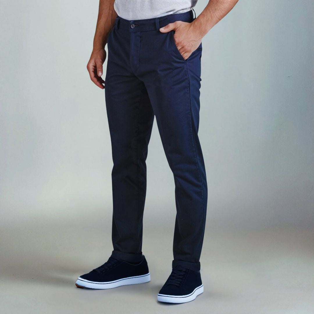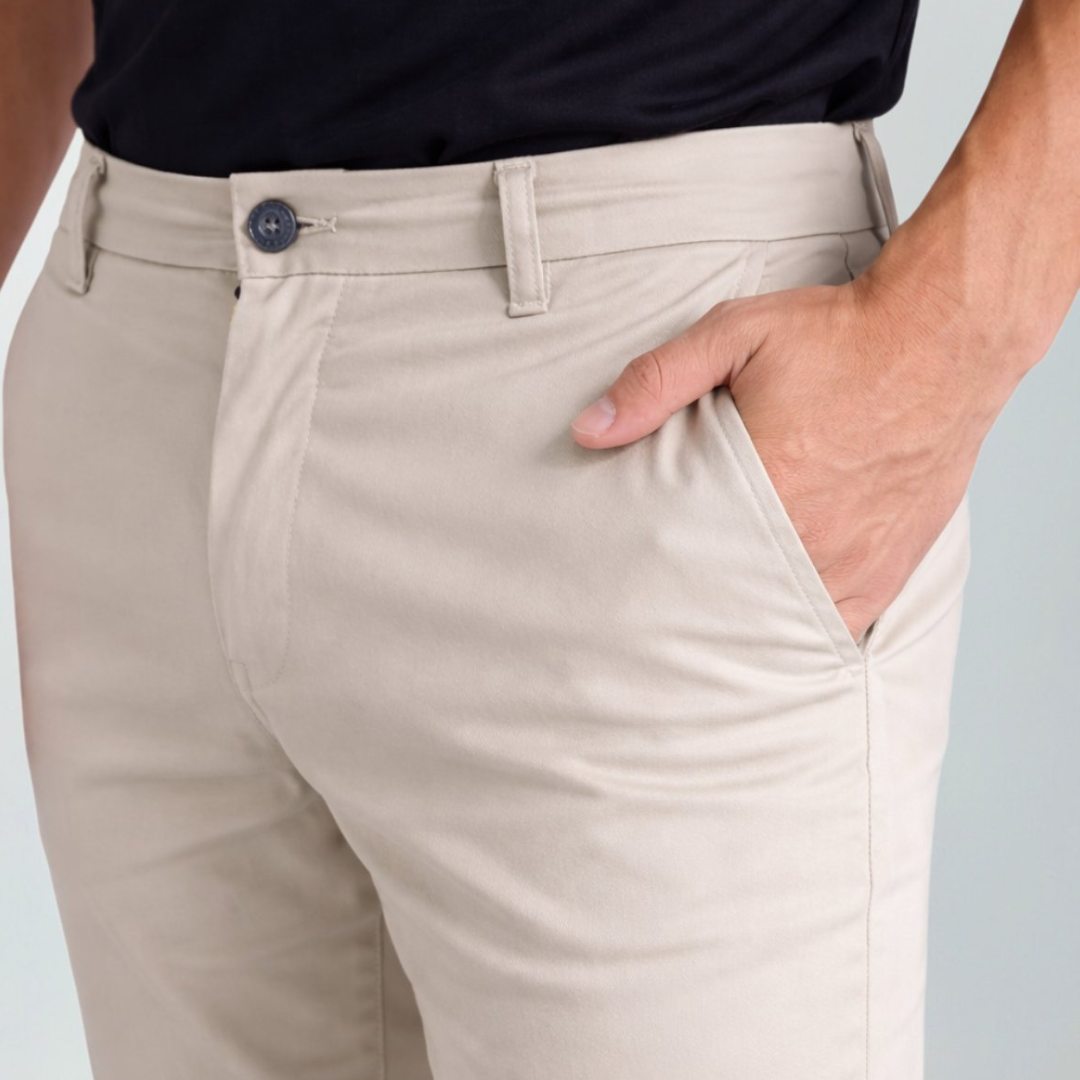A Regent One combina estrutura de alfaiataria com uma sarja leve e respirável, em 98% algodão com 2% elastano para oferecer alta qualidade com elasticidade sutil, que reduz desgaste e preserva a estrutura.